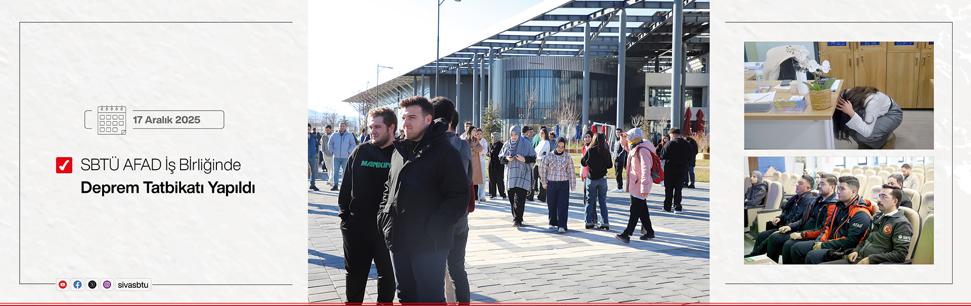Sivas Bilim ve Teknoloji Üniversitesi (SBTÜ) Sivil Savunma Amirliği ile AFAD Sivas İl Müdürlüğü iş birliğinde Üniversitemizde deprem tatbikatı gerçekleştirildi.